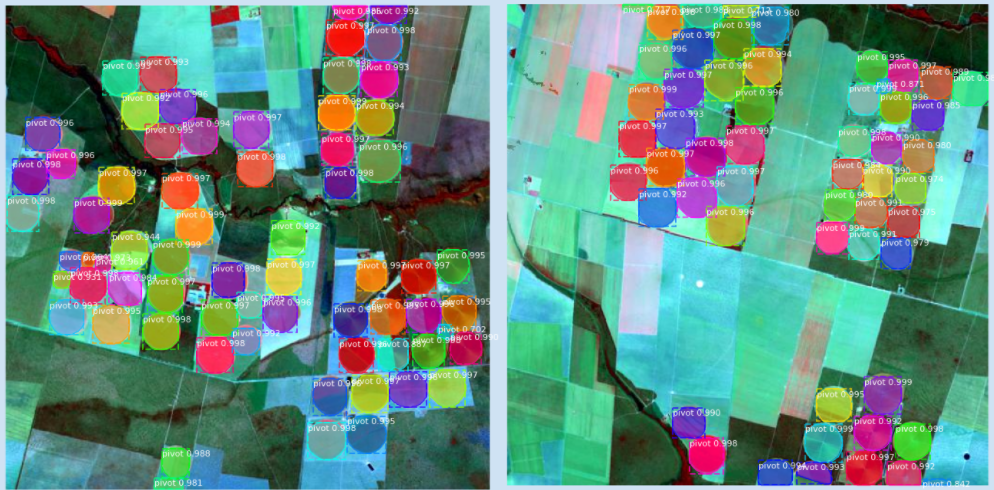 As imagens Landsat são ideais para a detecção de pivôs centrais de irrigação porque cobrem grandes áreas da Terra e fornecem informações multiespectrais, ou seja, capturam diferentes faixas do espectro eletromagnético. Essas imagens permitem uma visão detalhada das superfícies agrícolas e, com o uso de algoritmos de aprendizado de máquina, como a MaskRCNN, é possível identificar padrões de irrigação em escala regional.